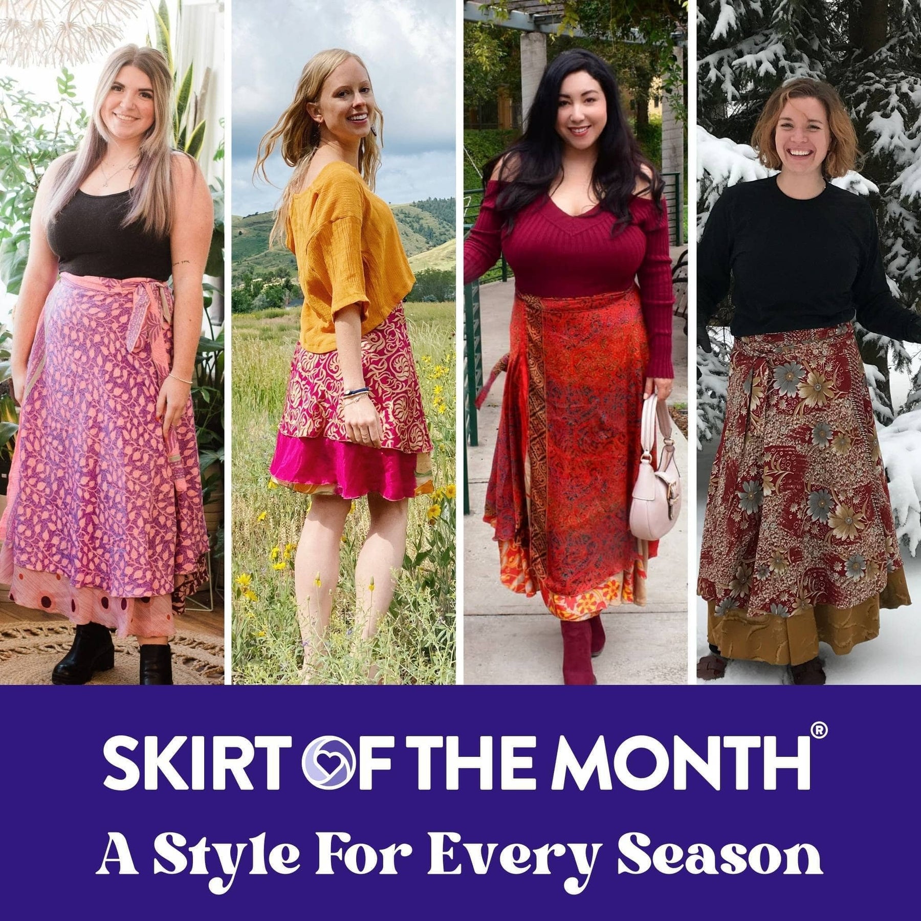 Join the Skirt of the Month Club to receive a custom, handcrafted sari skirt each month, with exclusive perks reserved just for members!