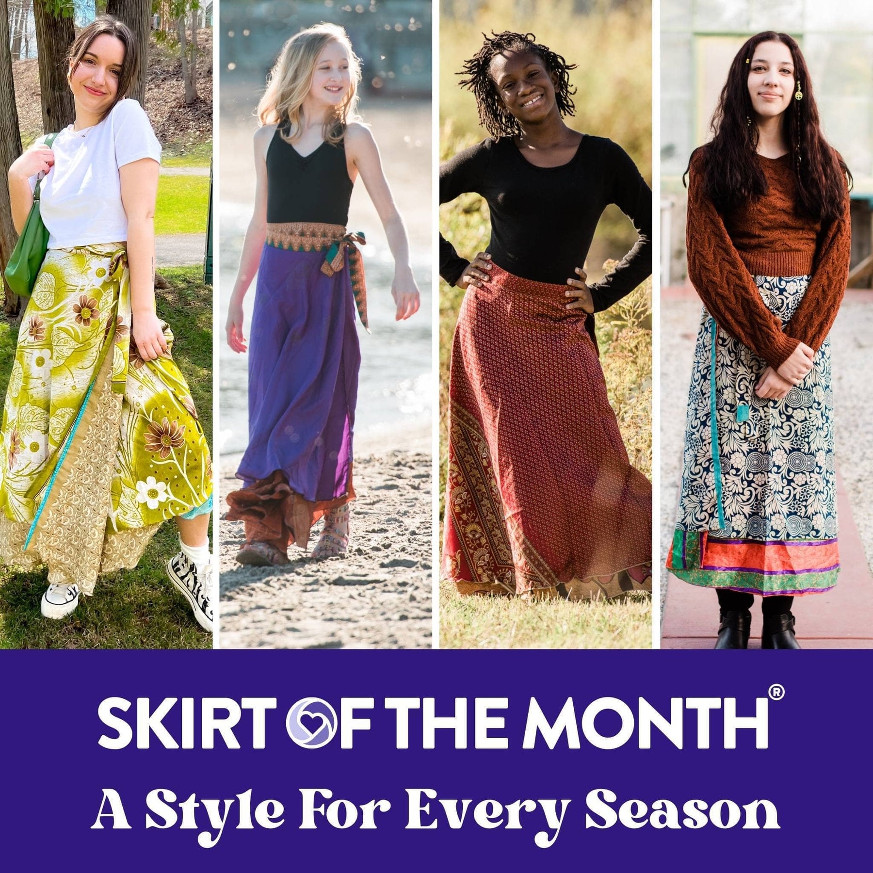 Join the Skirt of the Month Club to receive a custom, handcrafted sari skirt each month, with exclusive perks reserved just for members!