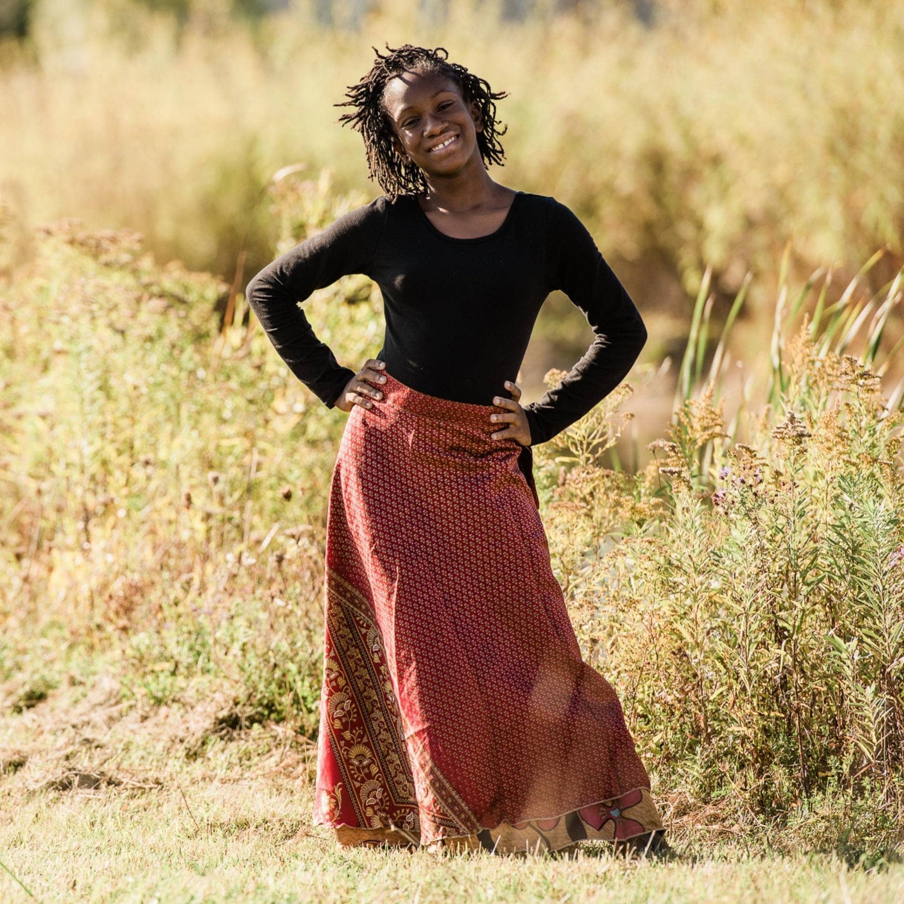 Your Length, Your Choice: Whether you're feeling the breezy mini, the elegant midi, or the classic maxi, we've got you covered. Trust in our seasoned sari skirt stylists or pick your perfect length. (Insider Tip: Choosing "seasonal" allows our team to choose a skirt for you perfect for the upcoming season for length and color)